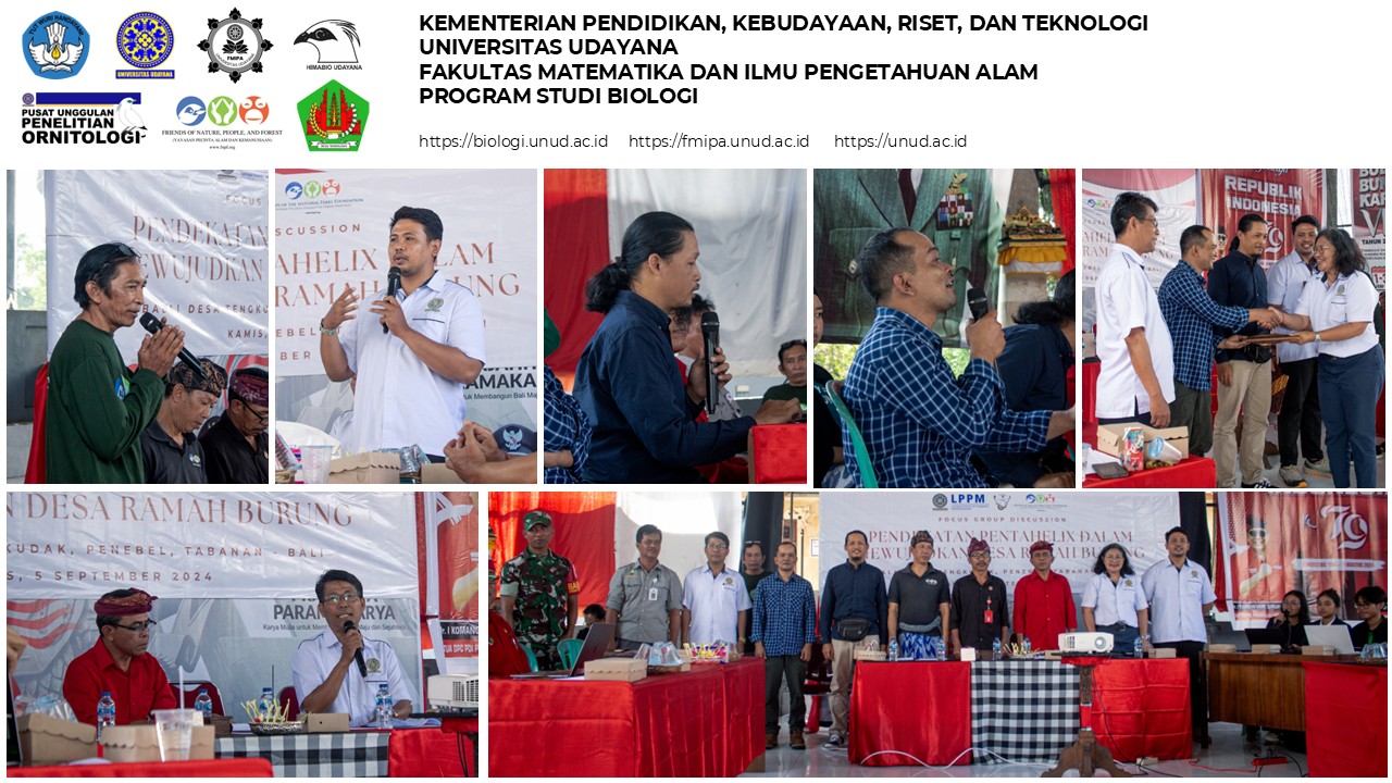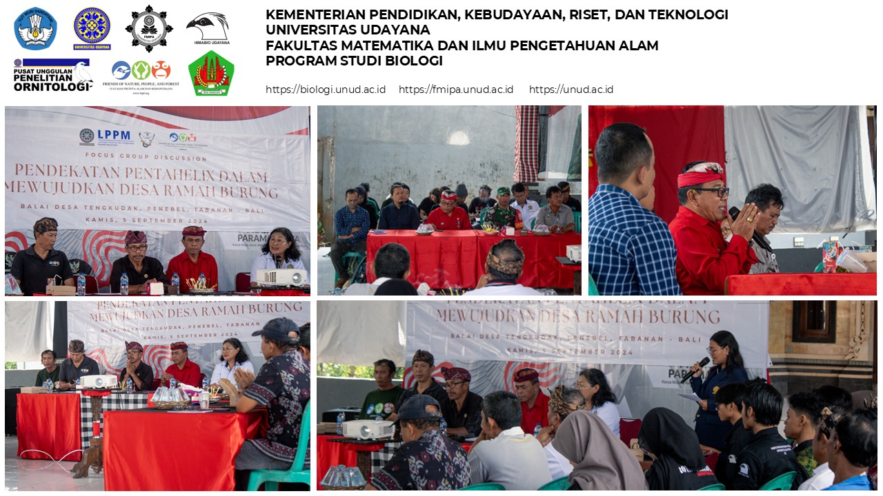 PENEBEL, TABANAN – Following up on the habitat assessment conducted earlier this year, the Center of Excellence in Ornithological Research (PUP Ornitologi), the Frank Williams Bird Statue Museum, and the Biology Study Program of FMIPA Udayana University held a strategic Focus Group Discussion (FGD) on Thursday, September 5, 2024. Hosted in Tengkudak Village, Penebel, the FGD focused on the theme "Pentahelix Approach in Creating a Bird-Friendly Village."