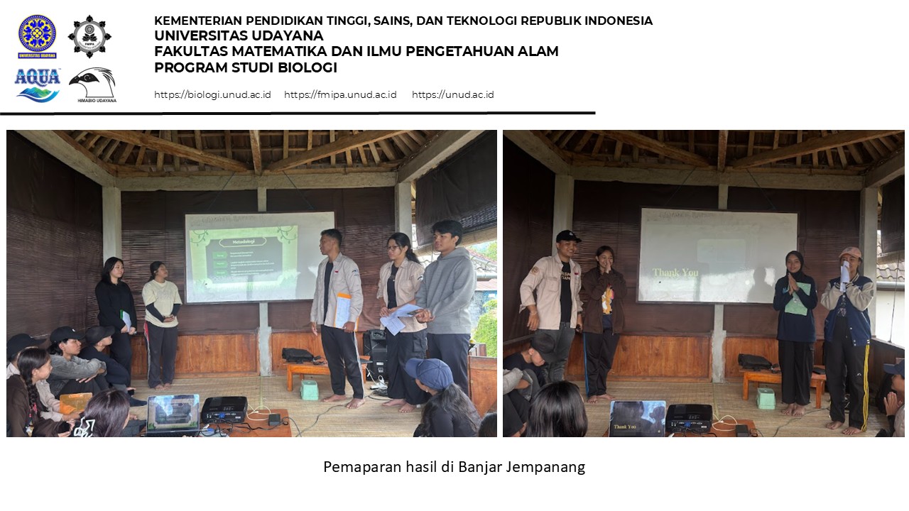 PT Tirta Investama – Mambal Factory (AQUA) has several partner villages that focus not only on social activities but also on environmental conservation. To optimize conservation efforts, PT Tirta Investama – Mambal Factory has established a Memorandum of Understanding with Udayana University, followed by a Cooperation Agreement with the Faculty of Mathematics and Natural Sciences (FMIPA). This collaboration is implemented by the Biology Study Program and the Biology Student Association (Himabio) of FMIPA Udayana through the Bali Biodiversity Camp program.