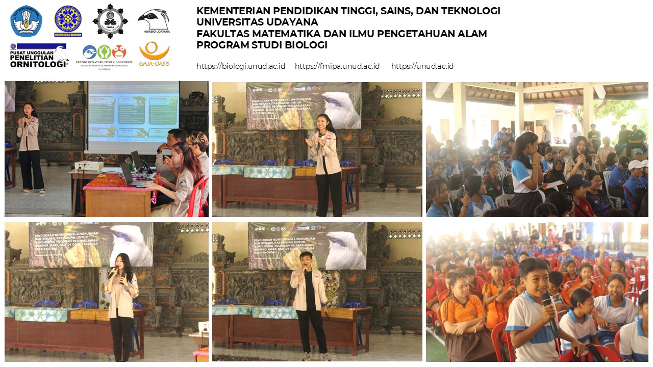 The Chairperson of the Organizing Committee, Prof. Dra. Luh Putu Eswaryanti Kusuma Yuni, M.Sc., Ph.D., stated that youth is a crucial period for forming ecological awareness. Consequently, the Biodiversity Study Club Curik Bali from Himabio Udayana provided interactive materials to elementary and high school students in Tejakula Village regarding the importance of habitat protection.