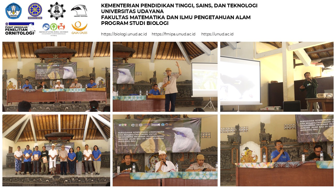 TEJAKULA, BULELENG – The Biology Study Program, FMIPA Udayana University (Unud), has taken a central role in ecosystem recovery efforts in Northern Bali through an environmental rehabilitation education program. The event, held on Saturday, October 11, 2025, at the Tejakula Village Hall, was designed to equip the community with the ecological understanding necessary to support the Bali Starling release program.