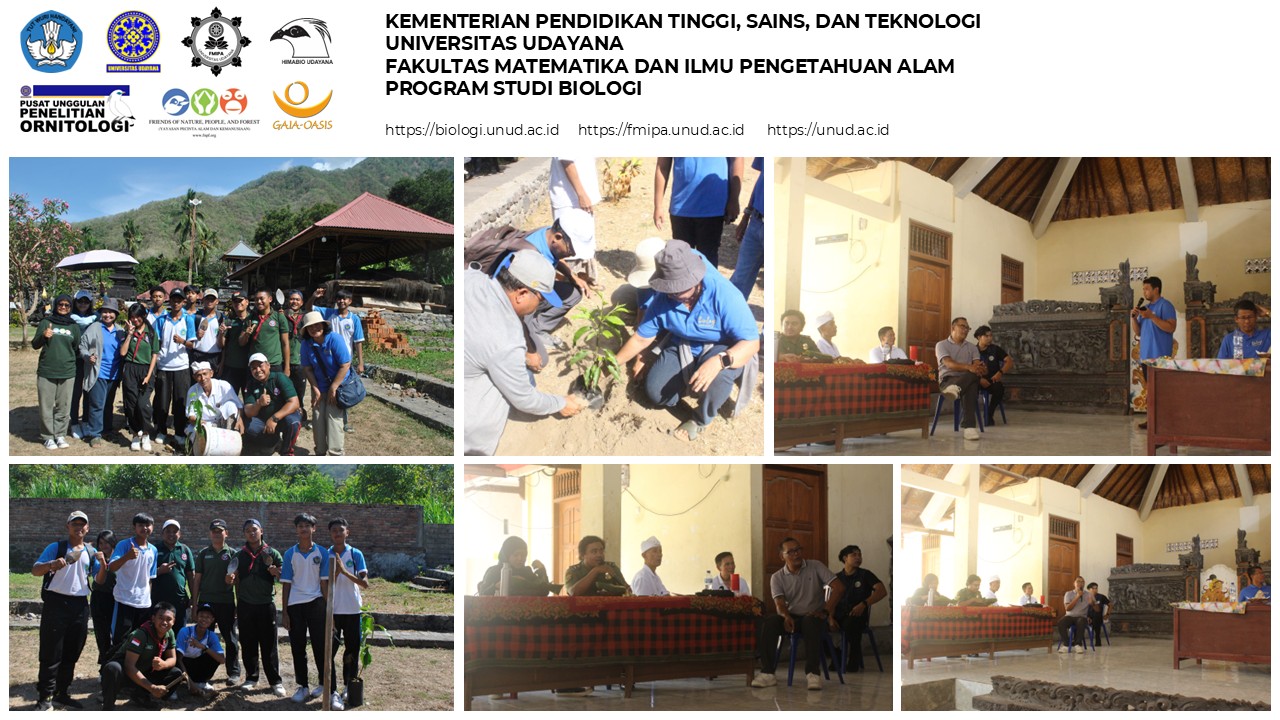The primary activity led by Unud's Biology Study Program focuses on environmental conservation education and land rehabilitation. This education aims to instill environmental values and ethics so that the local community can independently maintain the sustainability of flora and fauna.